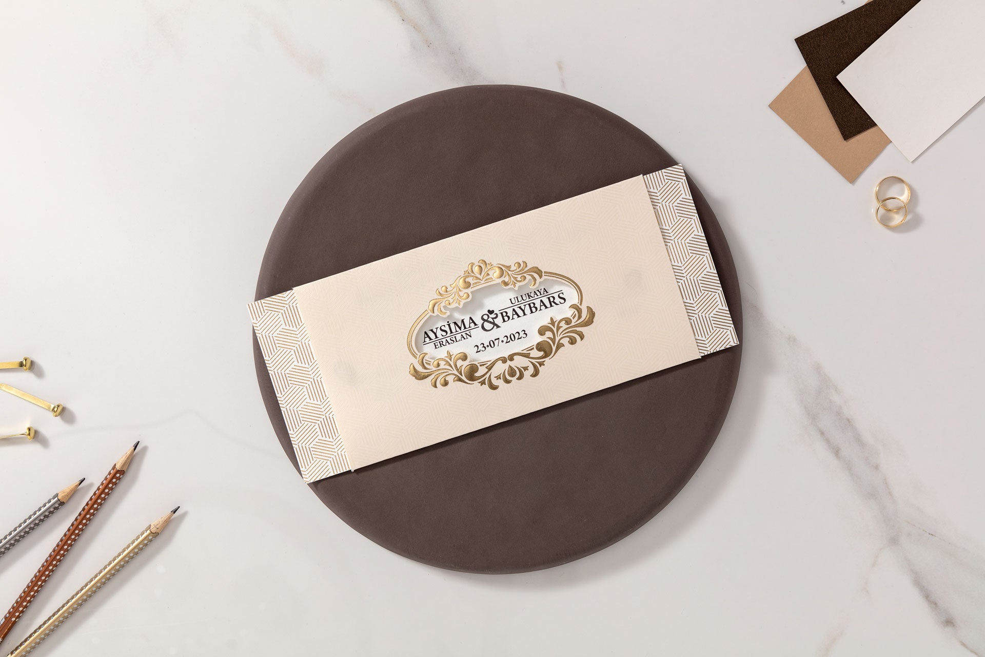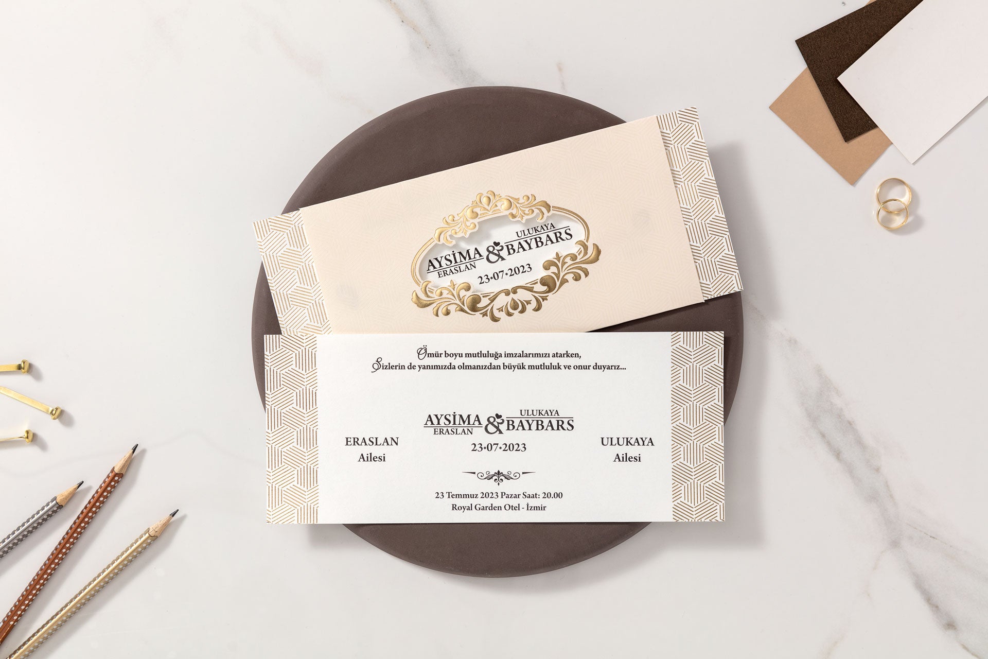 10522 - Tokos esküvői meghívó arany mintával