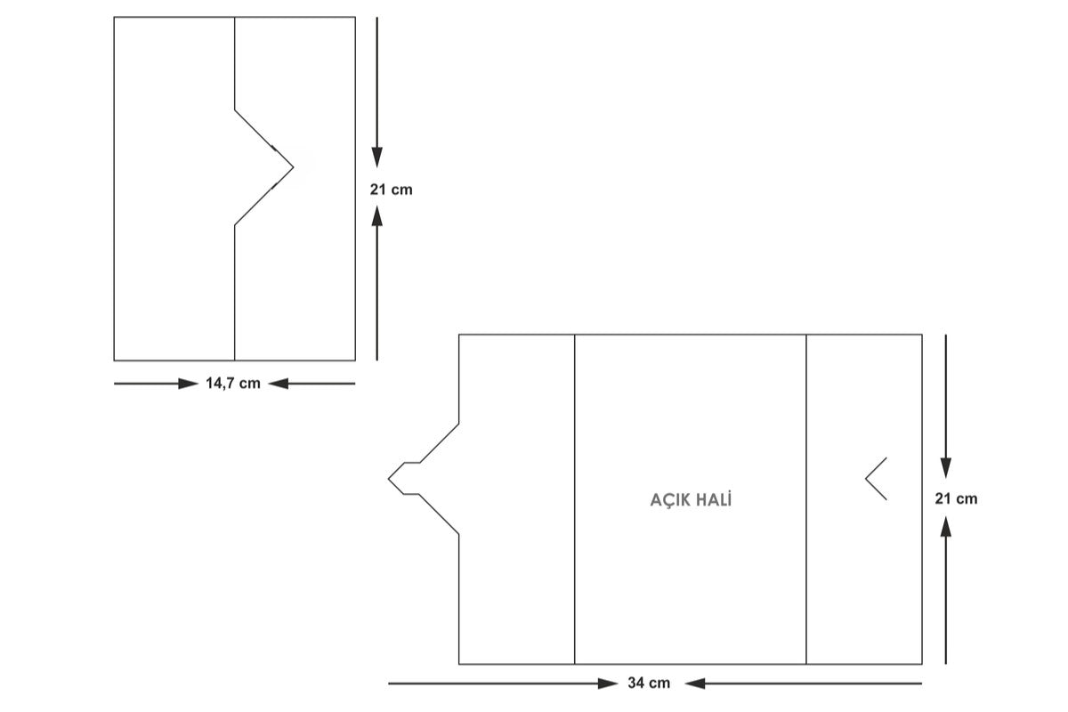 A boríték mérete összehajtva 21 x 15 cm.