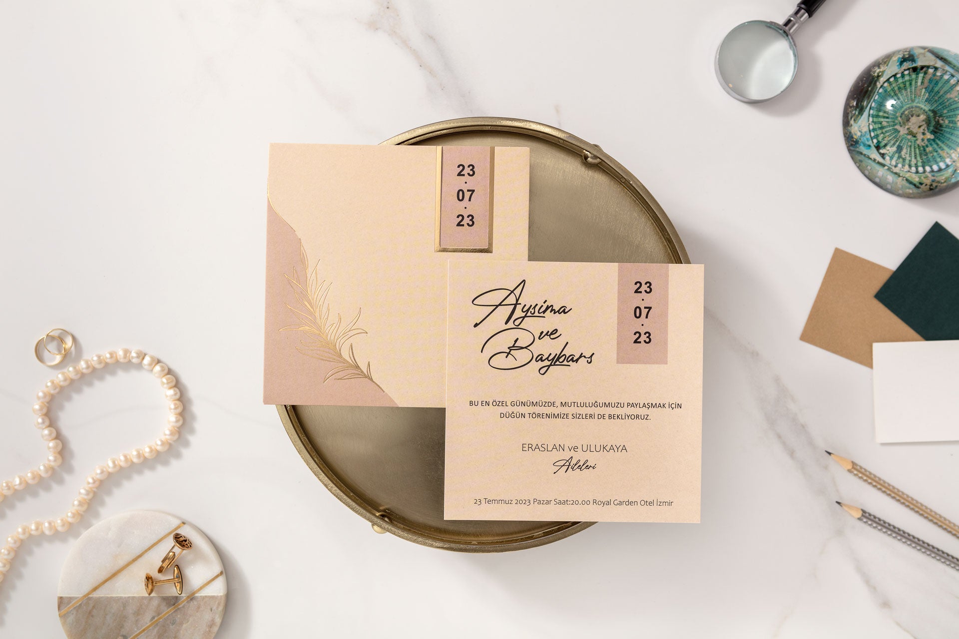 10587 - Arany leveles esküvői meghívó