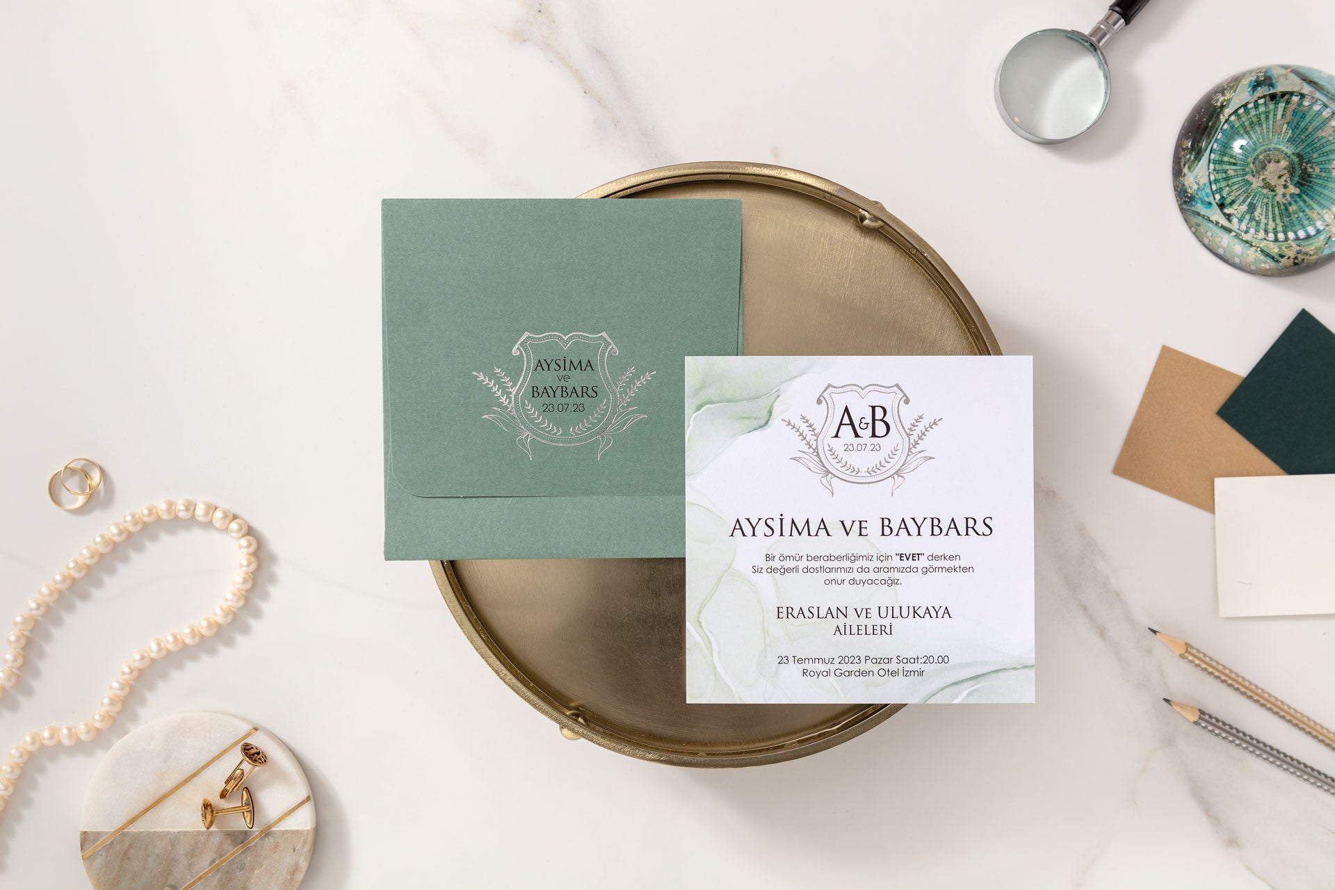 10619 - Aquarelles esküvői meghívó zöld mintával