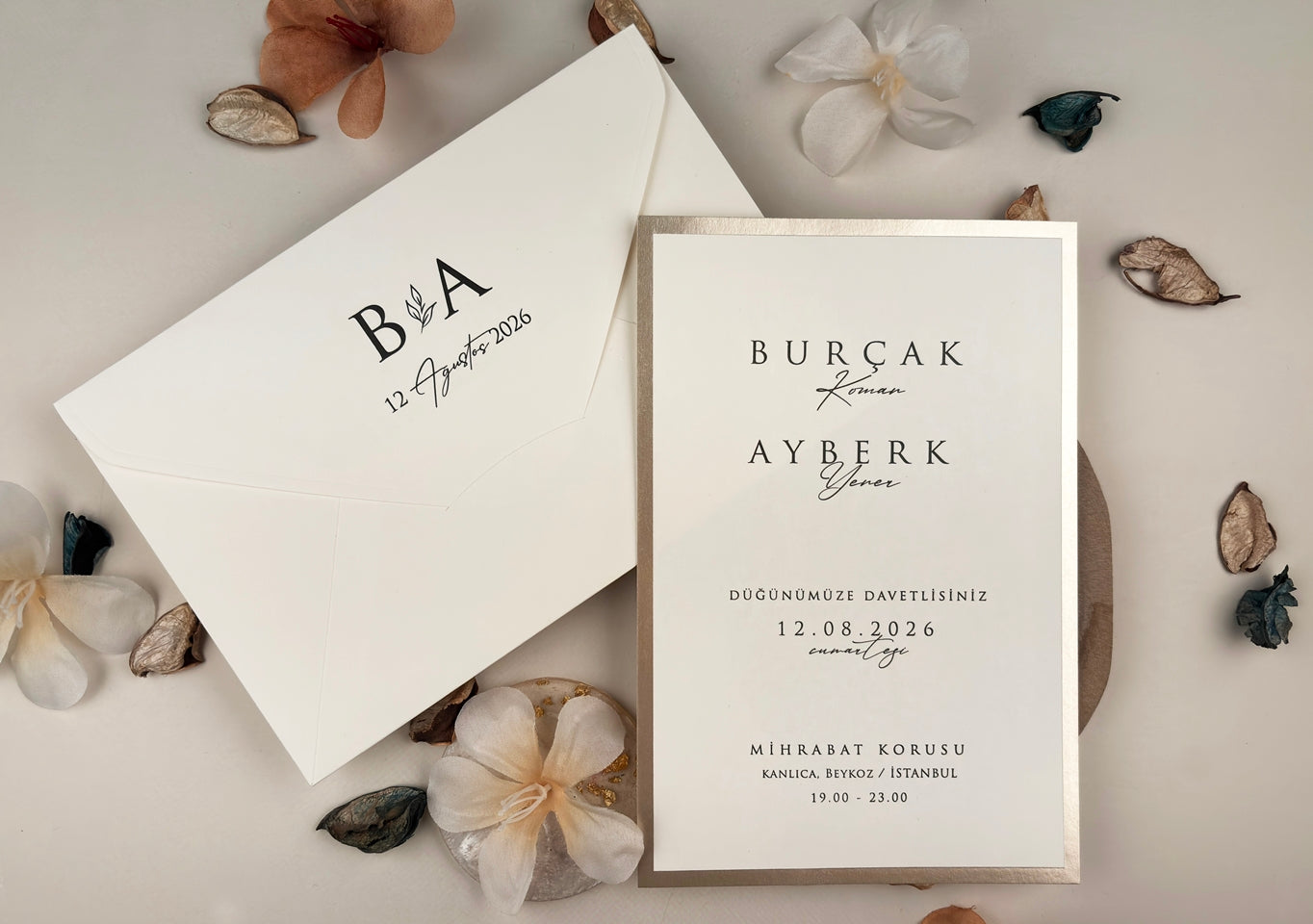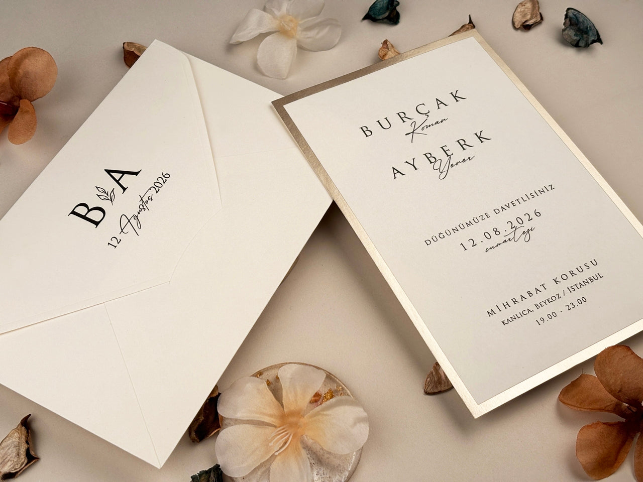 13313 - Minimalista esküvői meghívó arany szélekkel