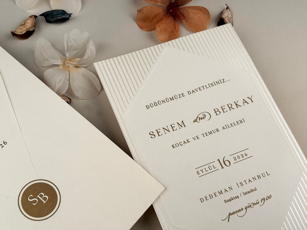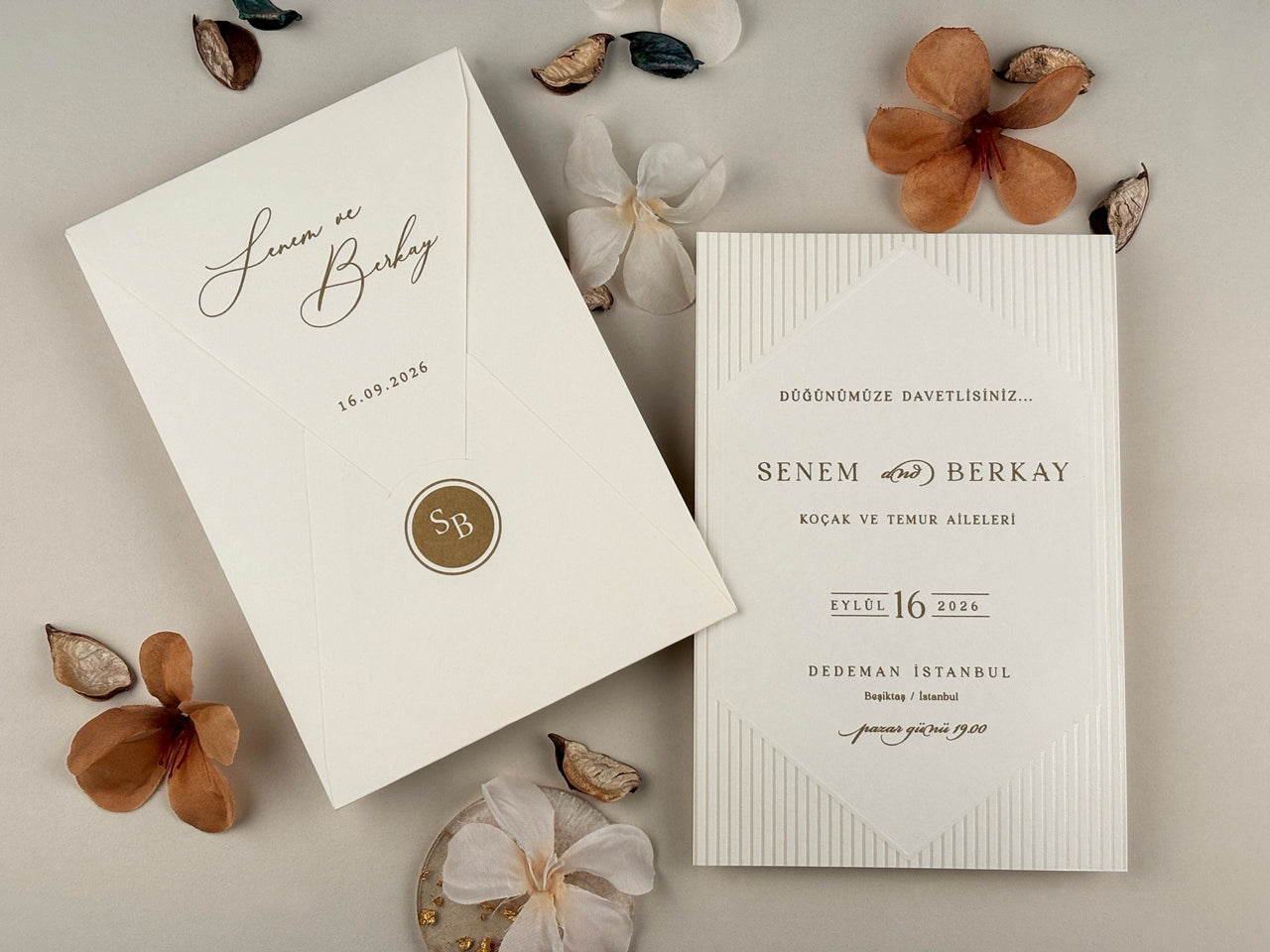 96935 - Elegáns esküvői meghívó dombornyomott mintával