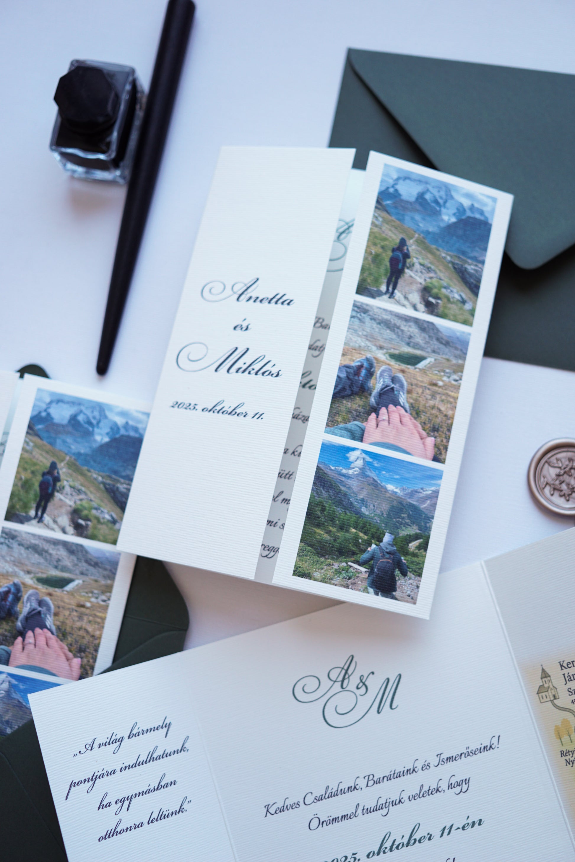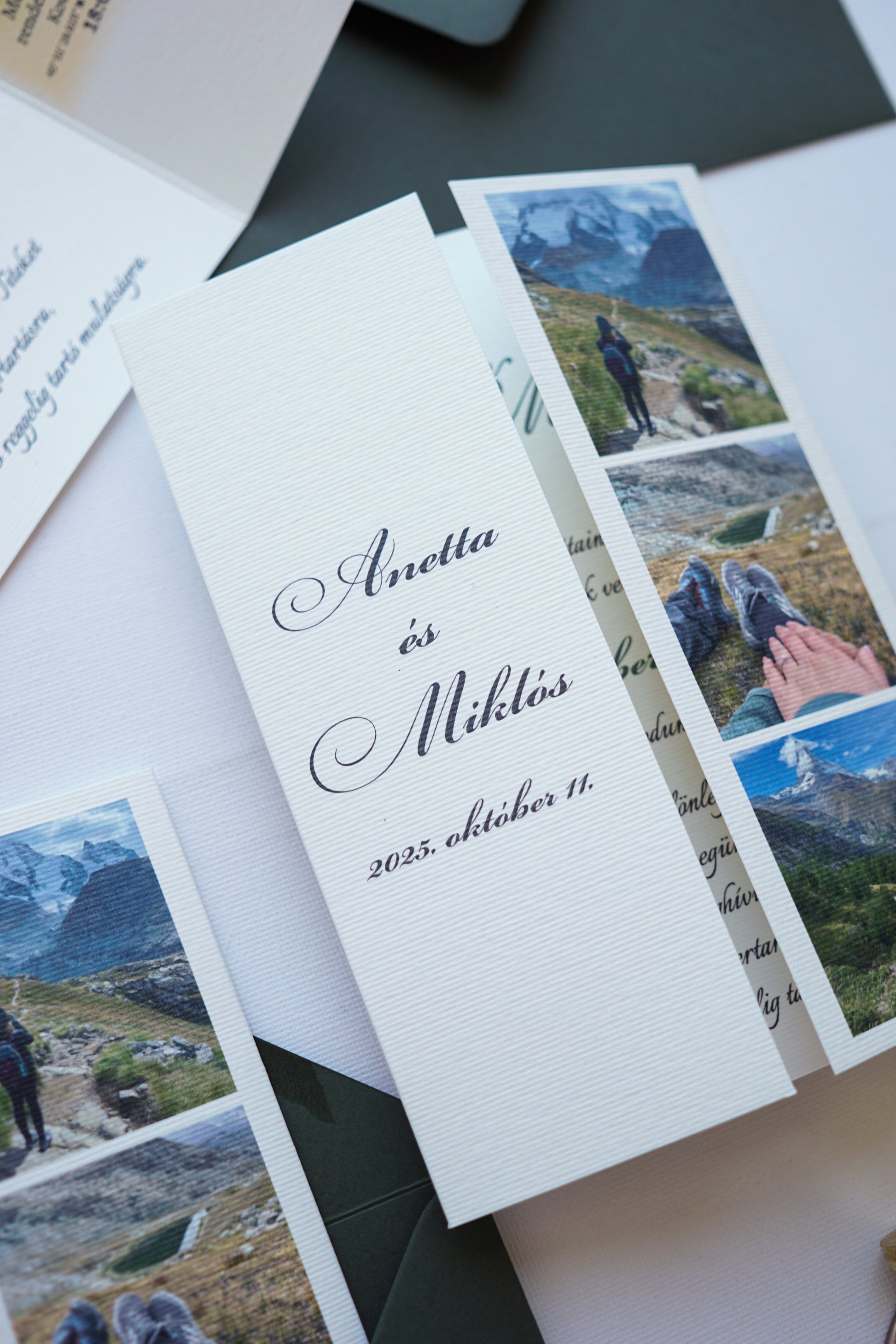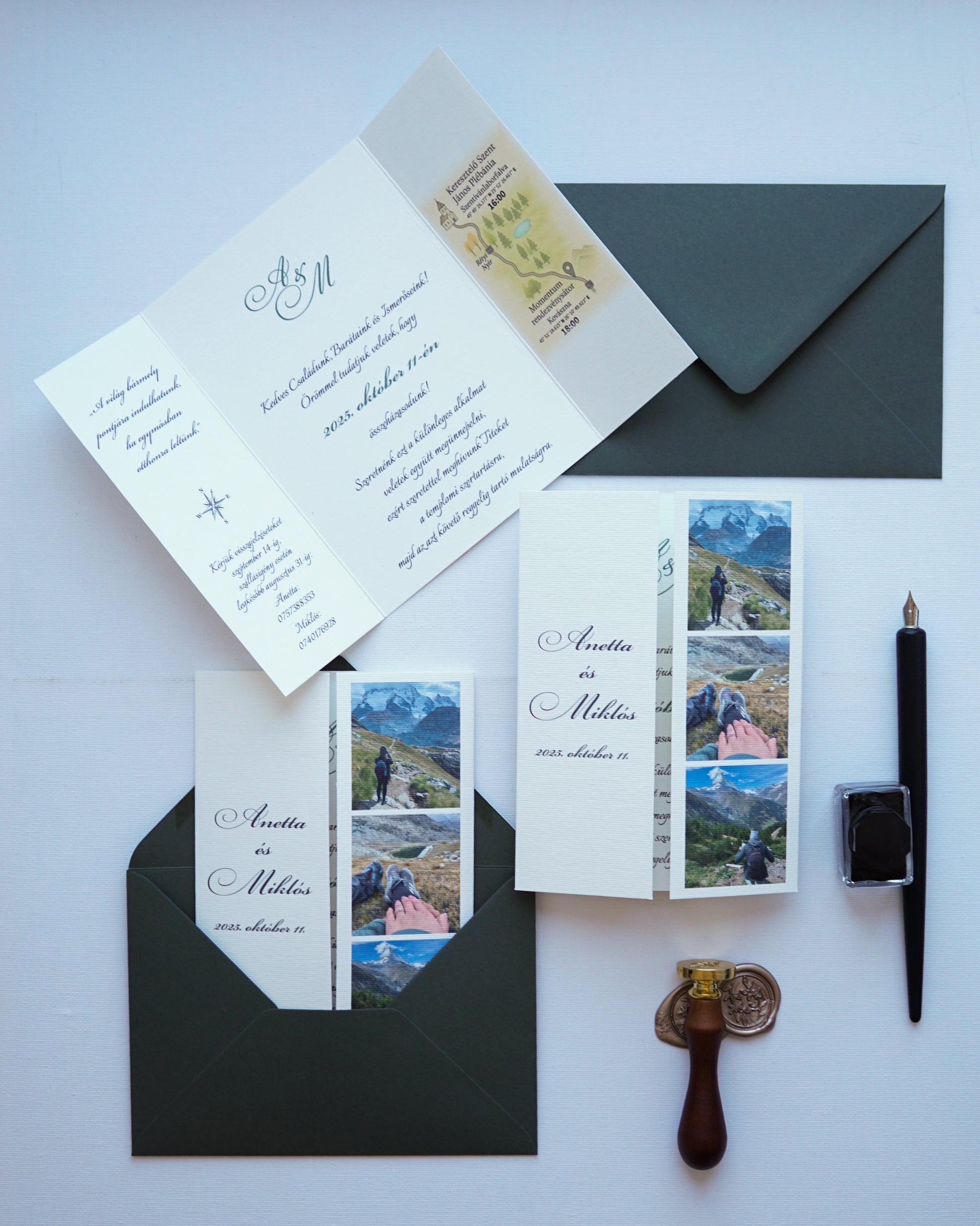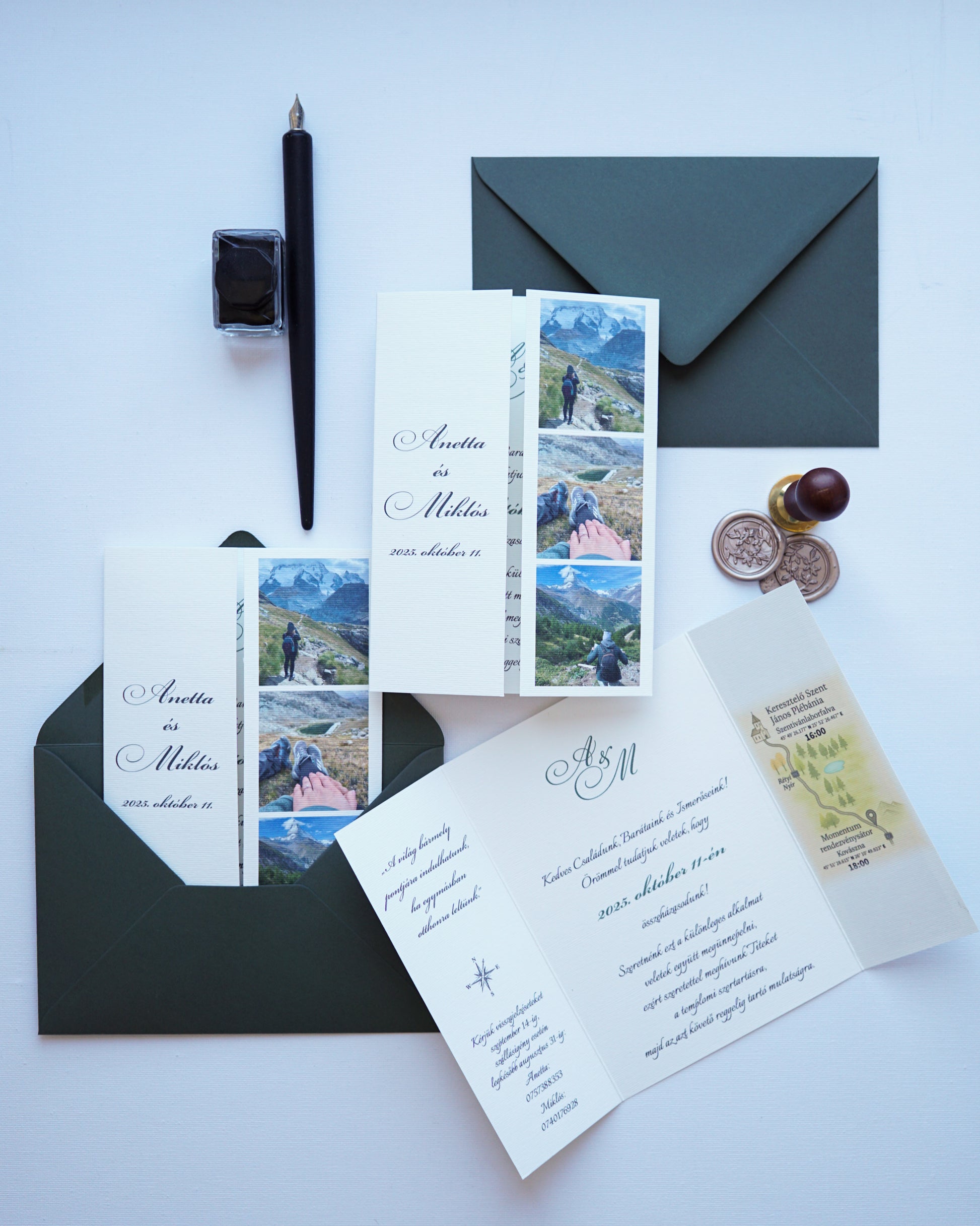 A meghívót 250 g/m2-es prémium minőségű olasz művészpapírból készítjük.
