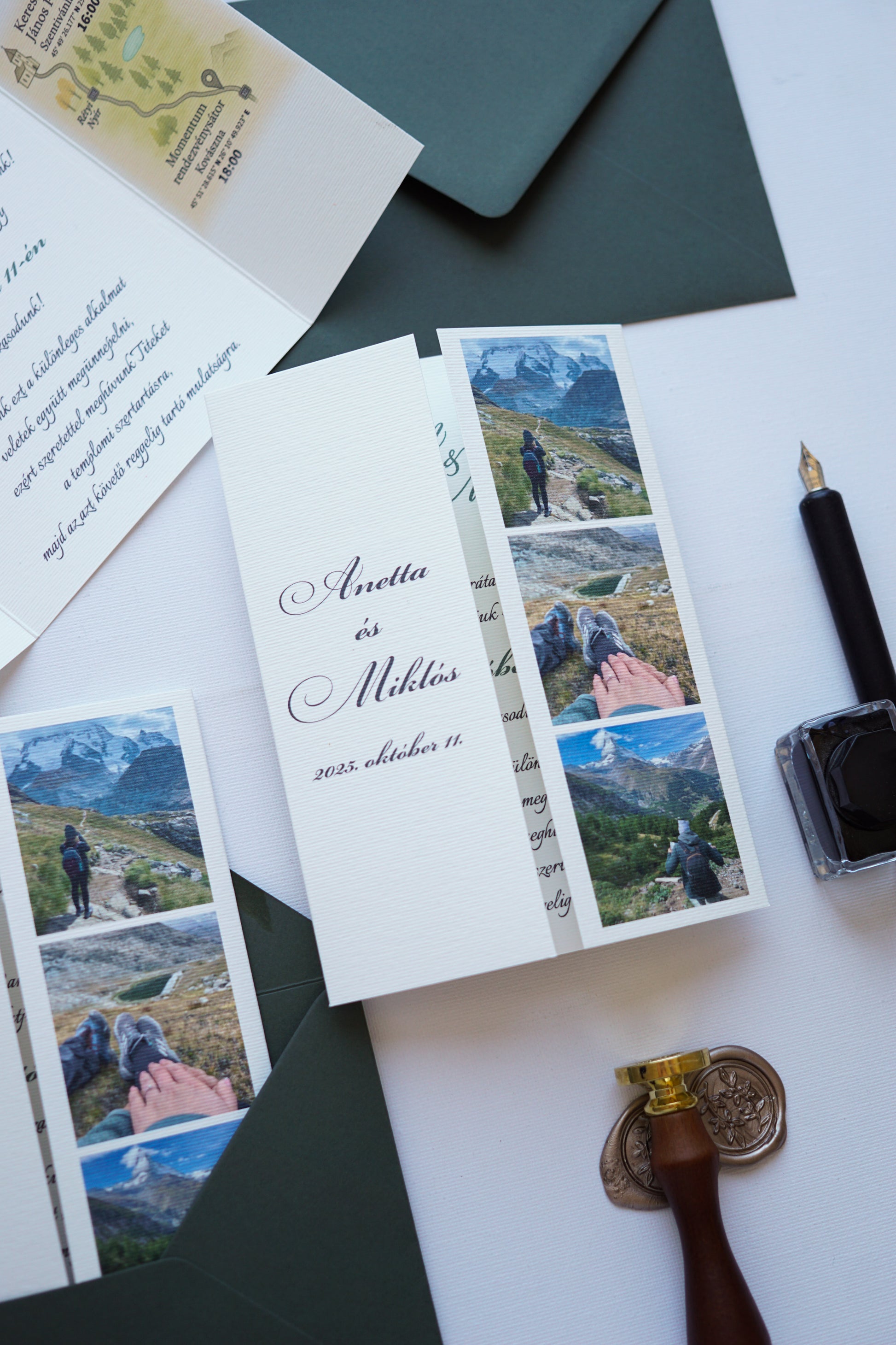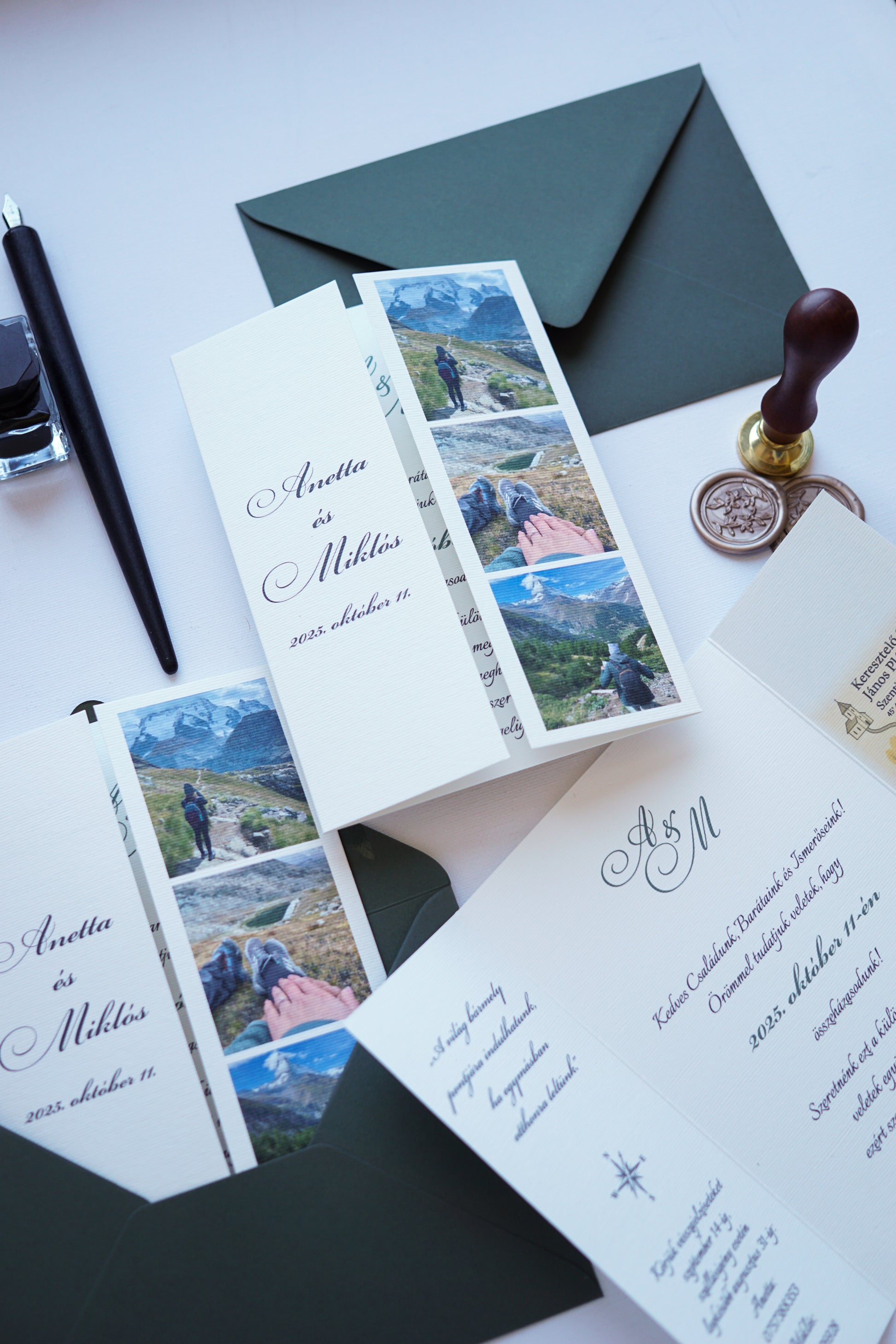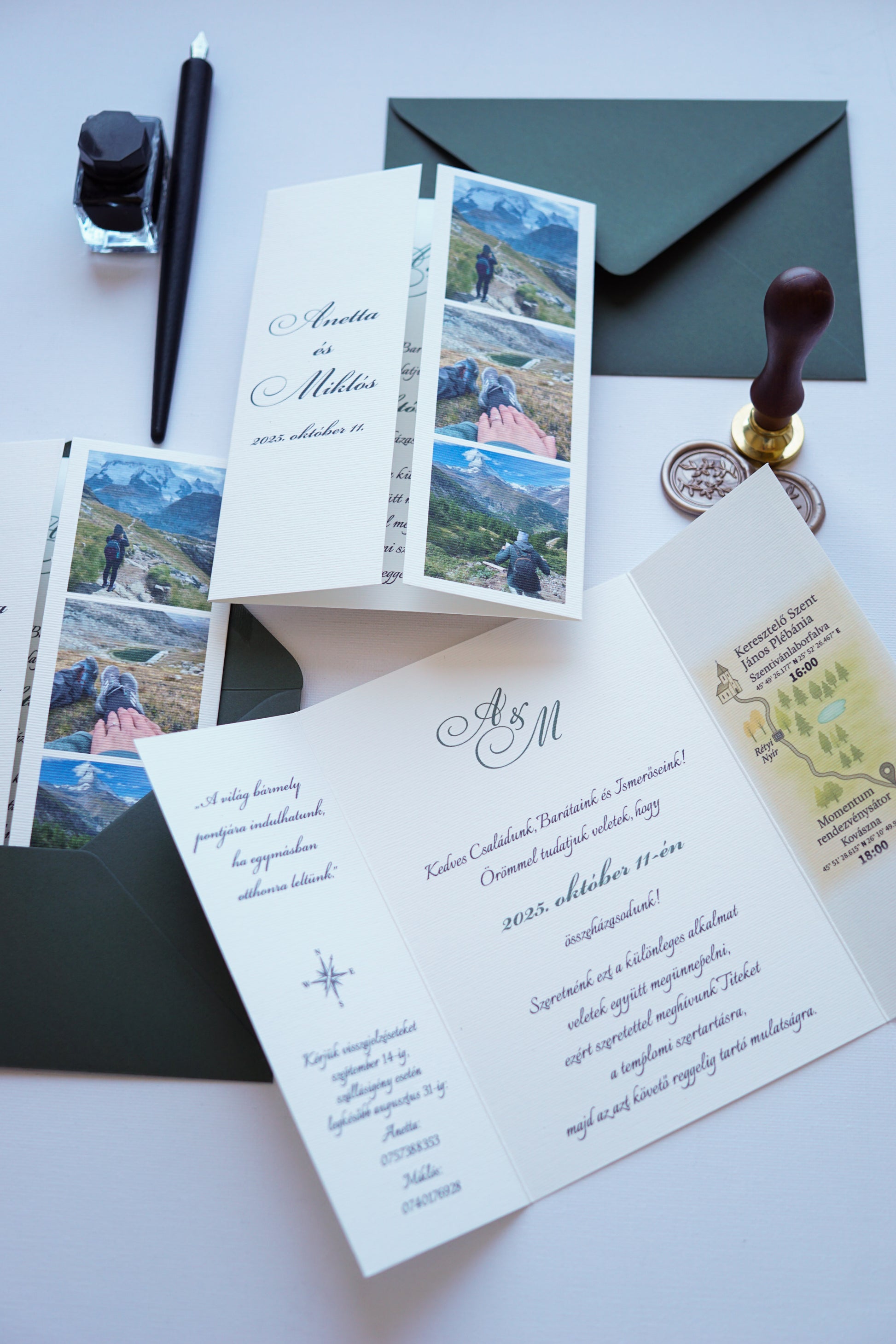 A meghívó mérete kinyitva 24 x 17 cm, behajtva 12 x 17 cm.