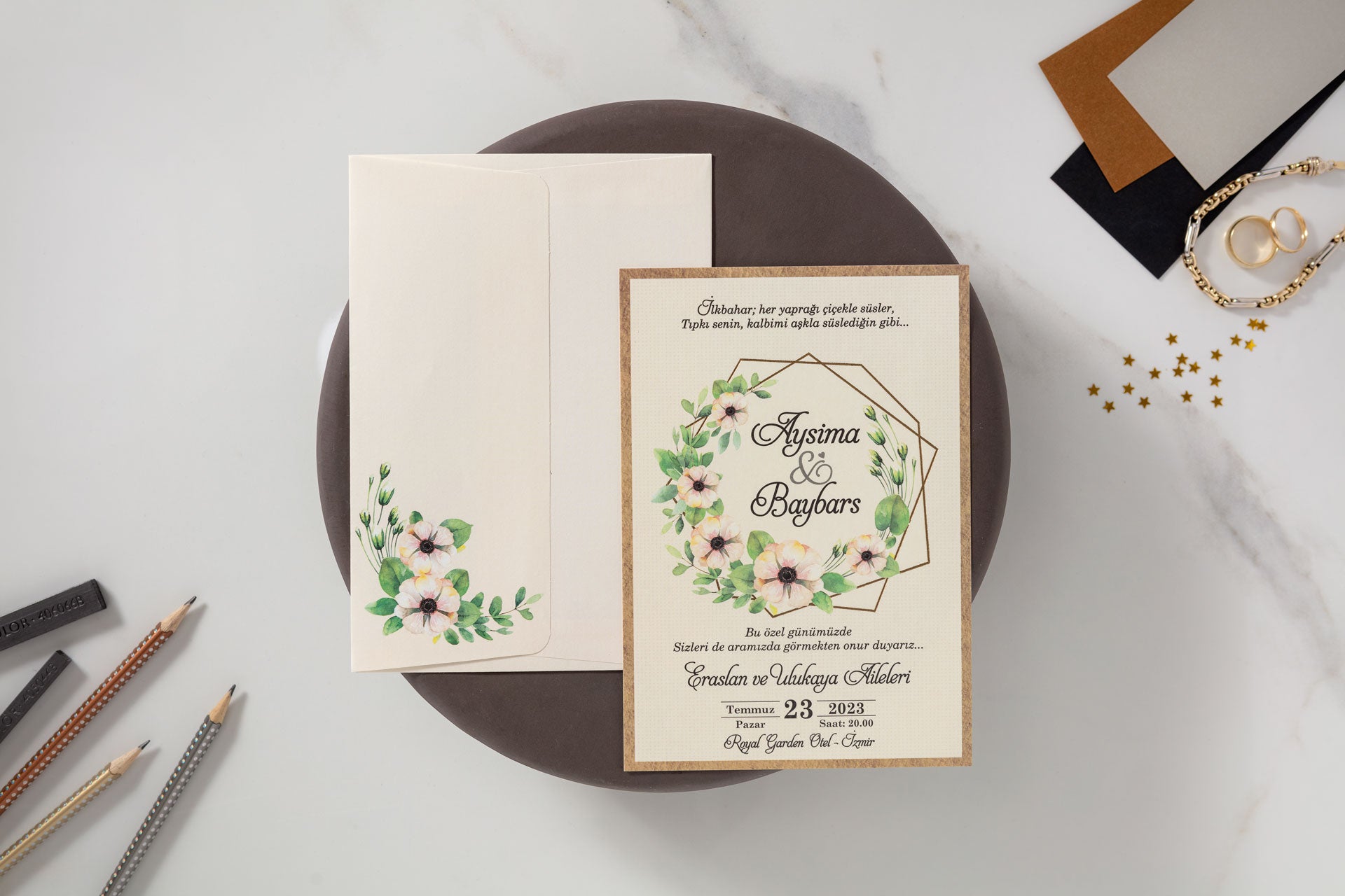A boríték mérete 20 x 14 cm, a meghívó körülbelül egy centivel kisebb ennél.