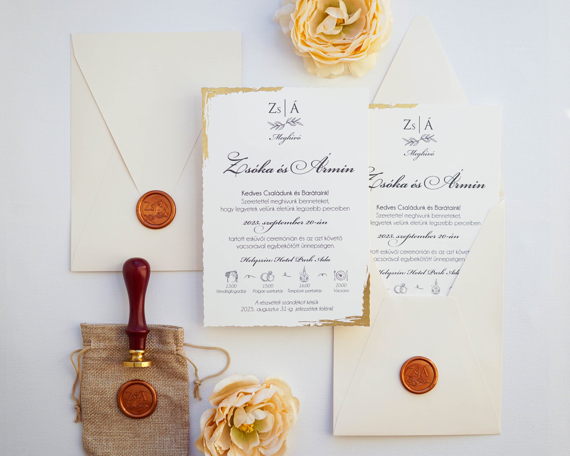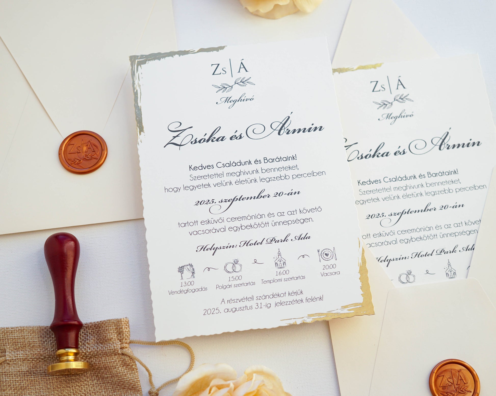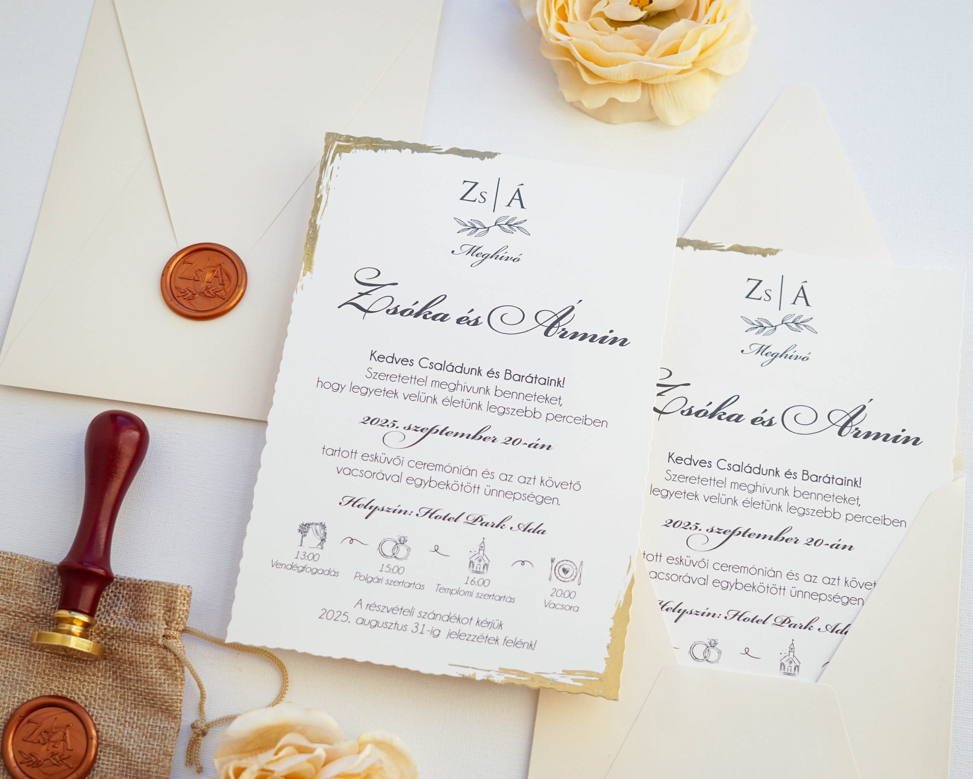 A képeken látható viaszpecsét nincs benne a meghívó árában, ez külön IDE KATTINTVA választható a meghívóhoz, az ára 2,5 lej vagy kb 210 ft/db.