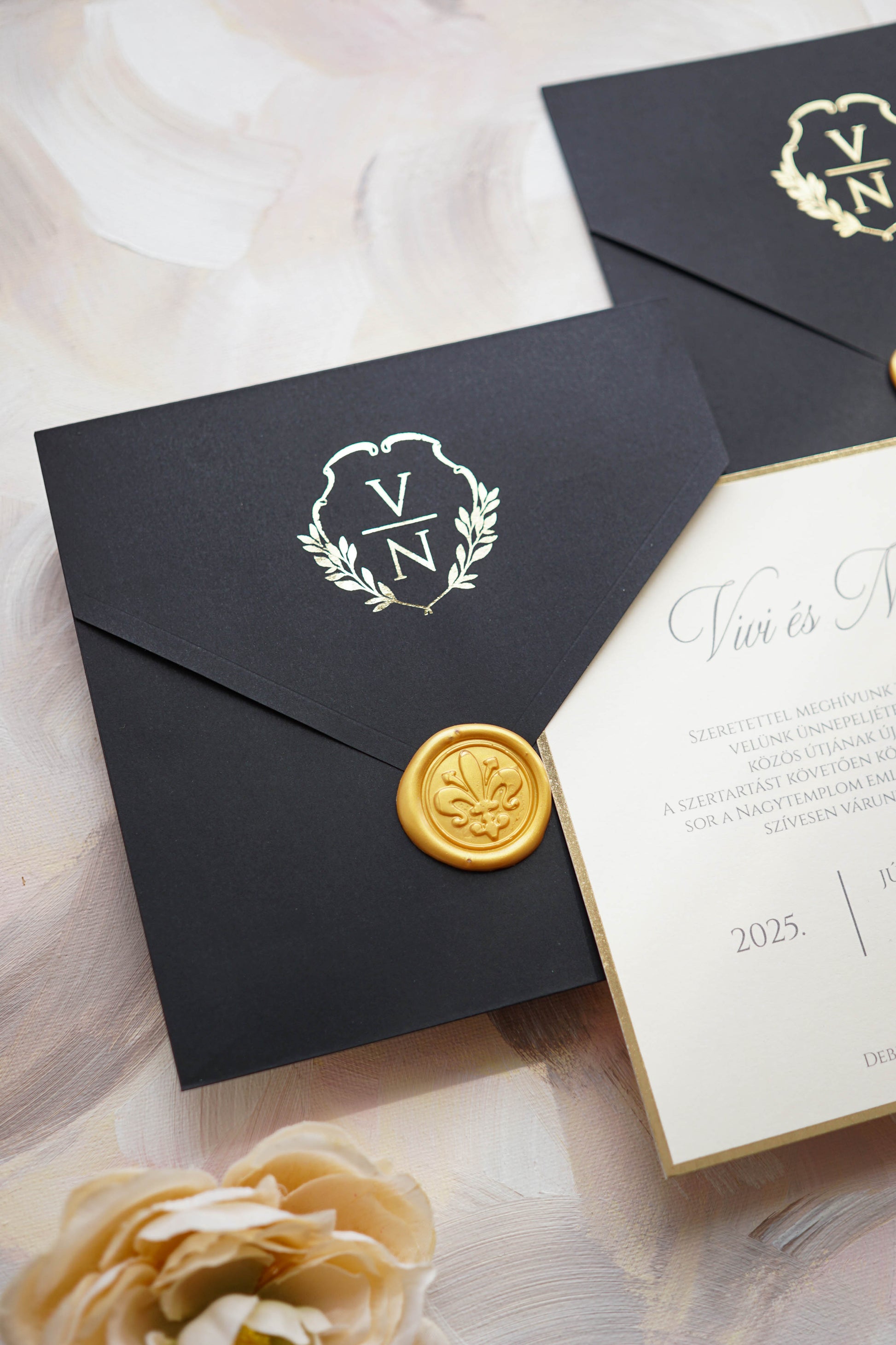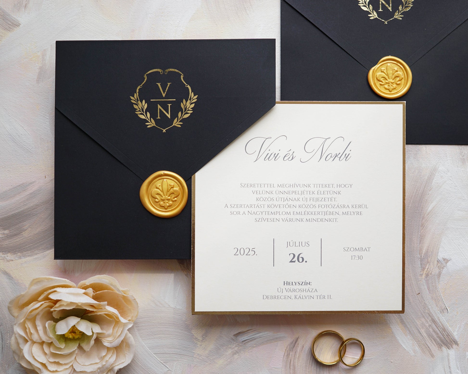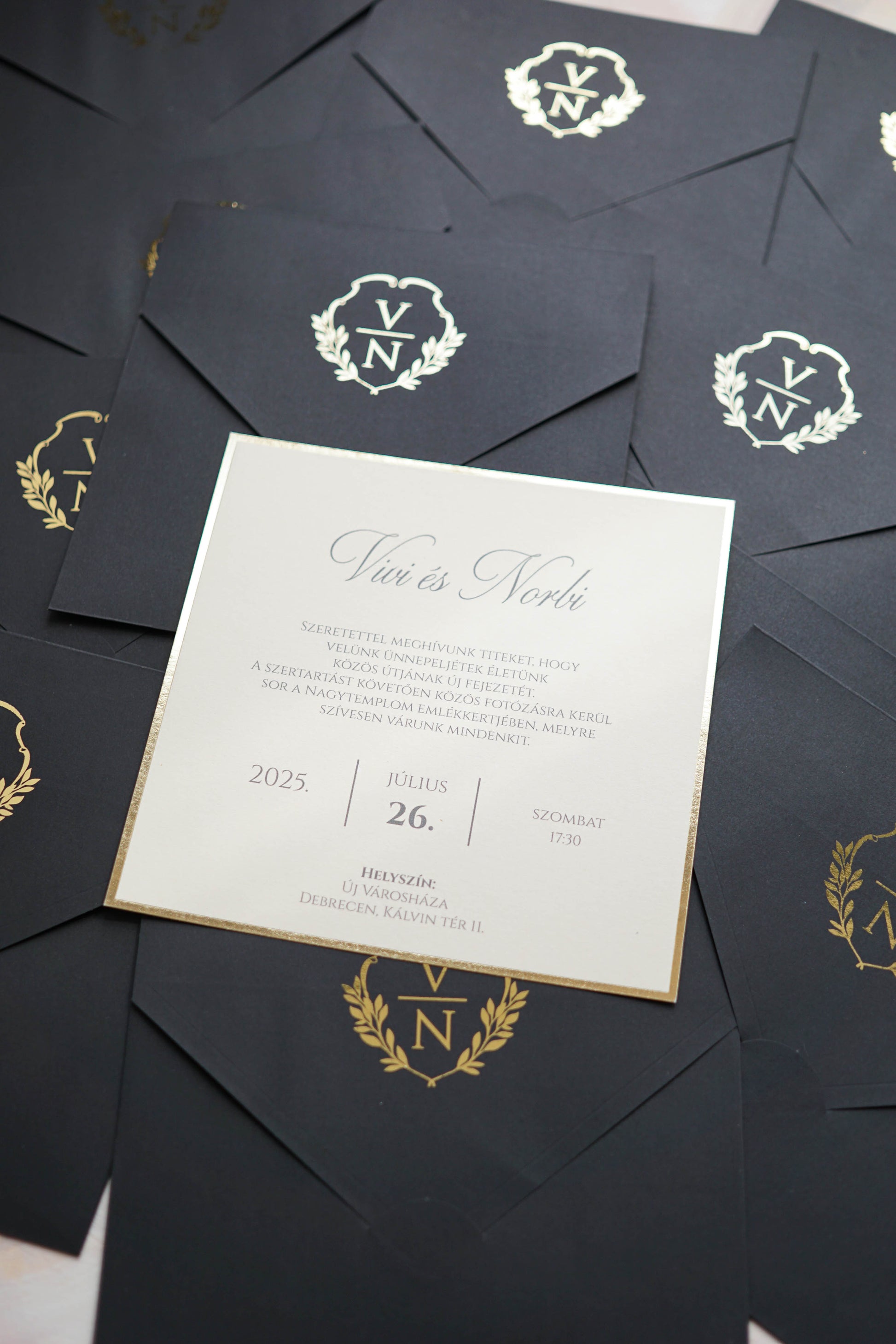 A boríték nyomtatása nincs benne a meghívó árában, ennek felára 2 RON vagy kb 160 ft/db aranyfóliázott nyomtatással.