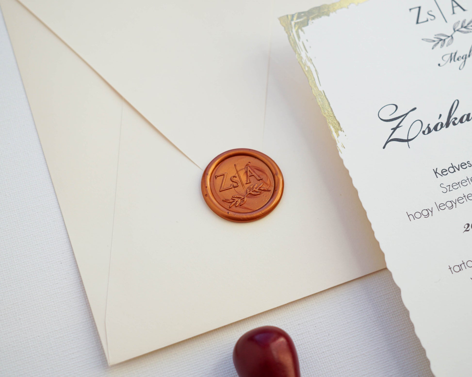 Rézből készült pecsétnyomó fej és a fából készült fogó is benne van az árban.