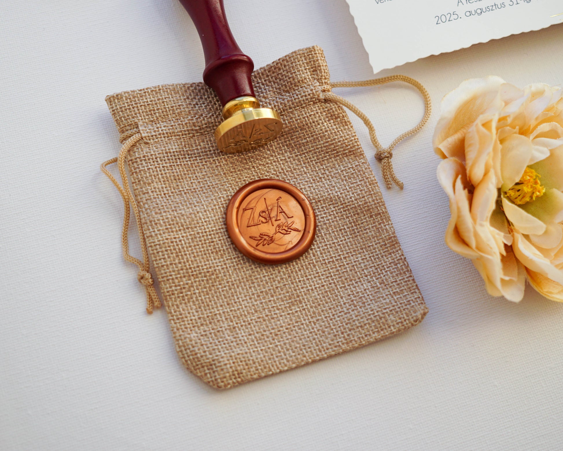 Egyedi monogramos pecsétnyomó, 2,5 cm átmérőjű.