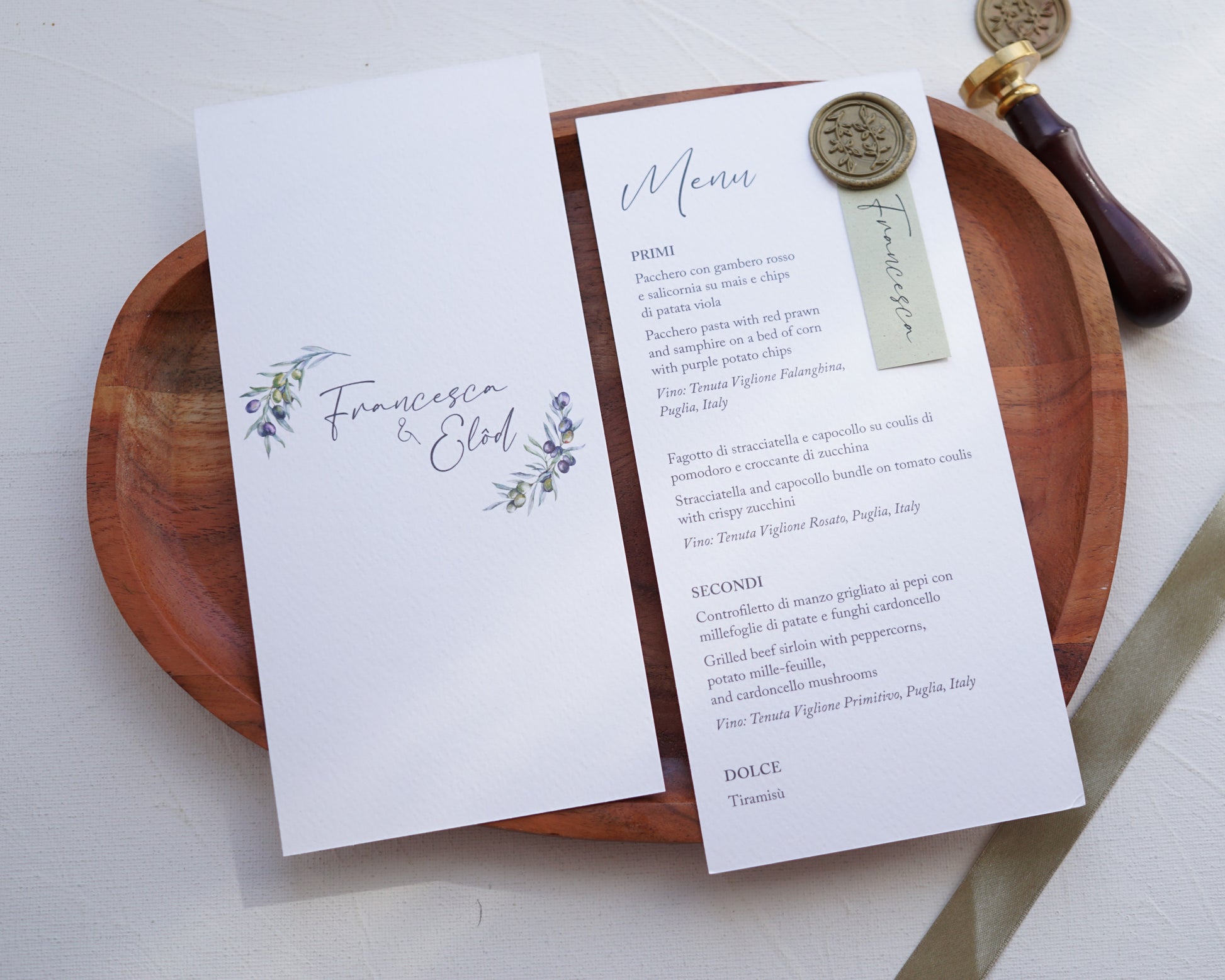 Rendelhető hozzá találó menü, ültető kártya, ital címke vagy egyéb kiegészítő,