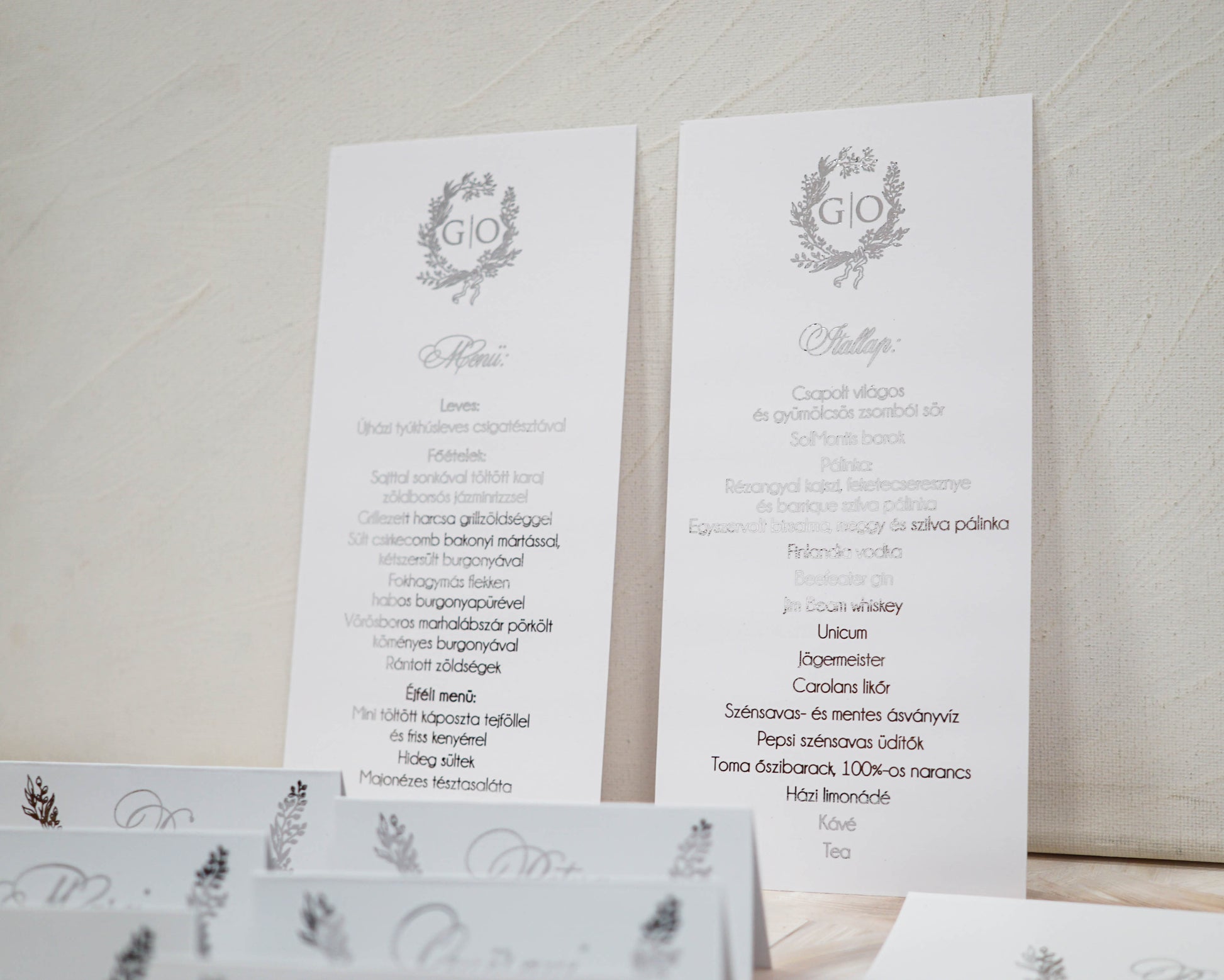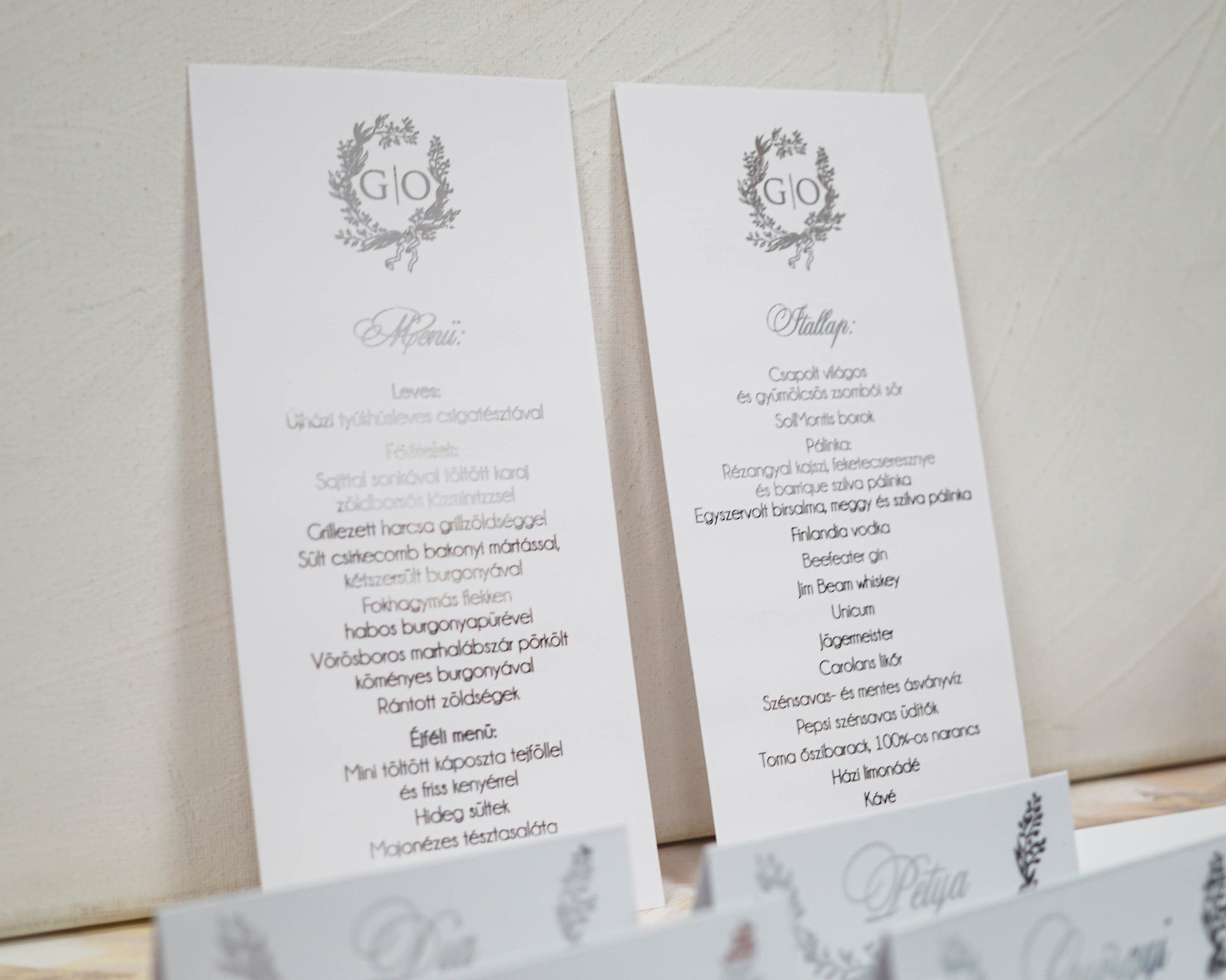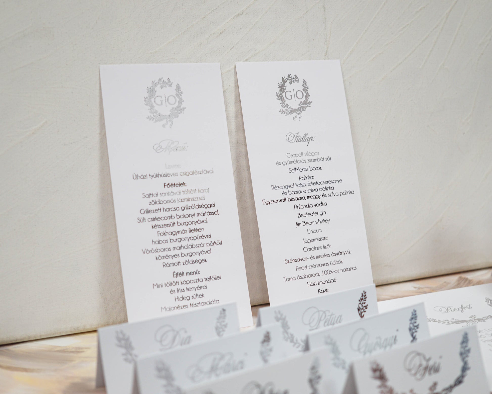 Rendelhető hozzá találó menü, ültető kártya, ital címke vagy egyéb kiegészítő,