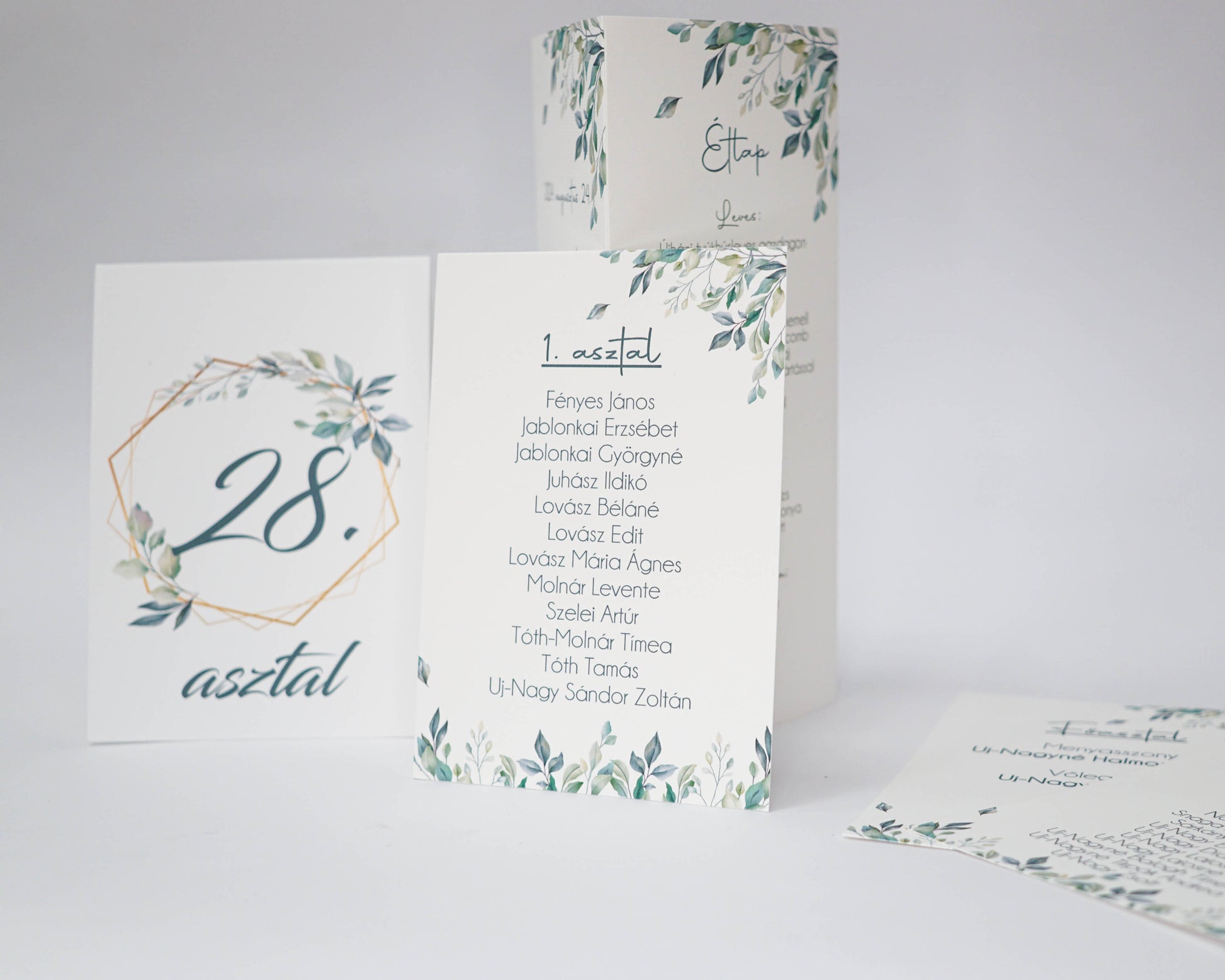 Zöld leveles ültetési rend, asztalonként egy - egy kártyás felosztásban.